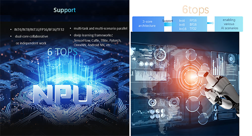 4. Edge AI: Ang integrated 6 TOPS NPU ay nagbibigay-daan sa mga developer na bumuo ng mga application na low-latency AI tulad ng mga sistema ng pagkilala sa facial at mga matalinong sensor.