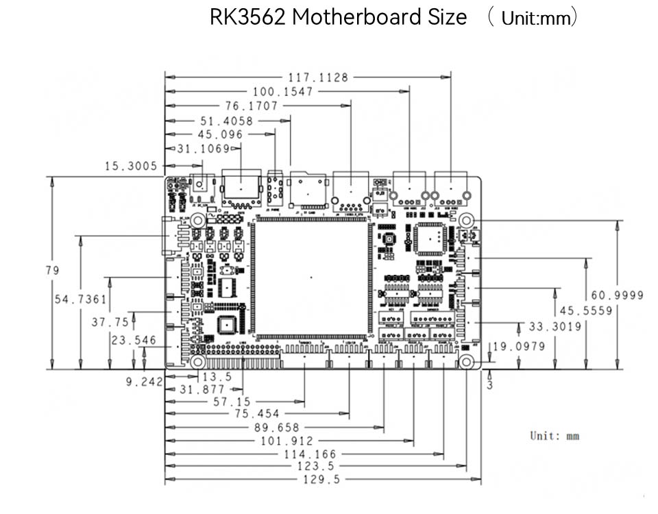 Model: RK3562/RK3562JCPU: Quad-Core Cortex-A53, Pangunahing dalas hanggang sa 2.0GHzGPU: Mali-G52NPU: 1tops computing power (Industrial-grade RK3562J nang walang NPU)